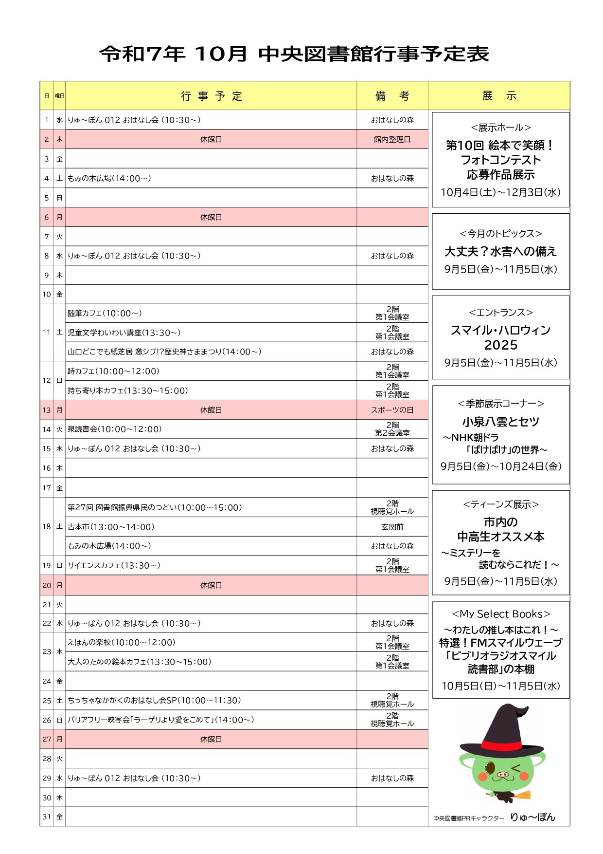 行事予定表 (中央図書館)