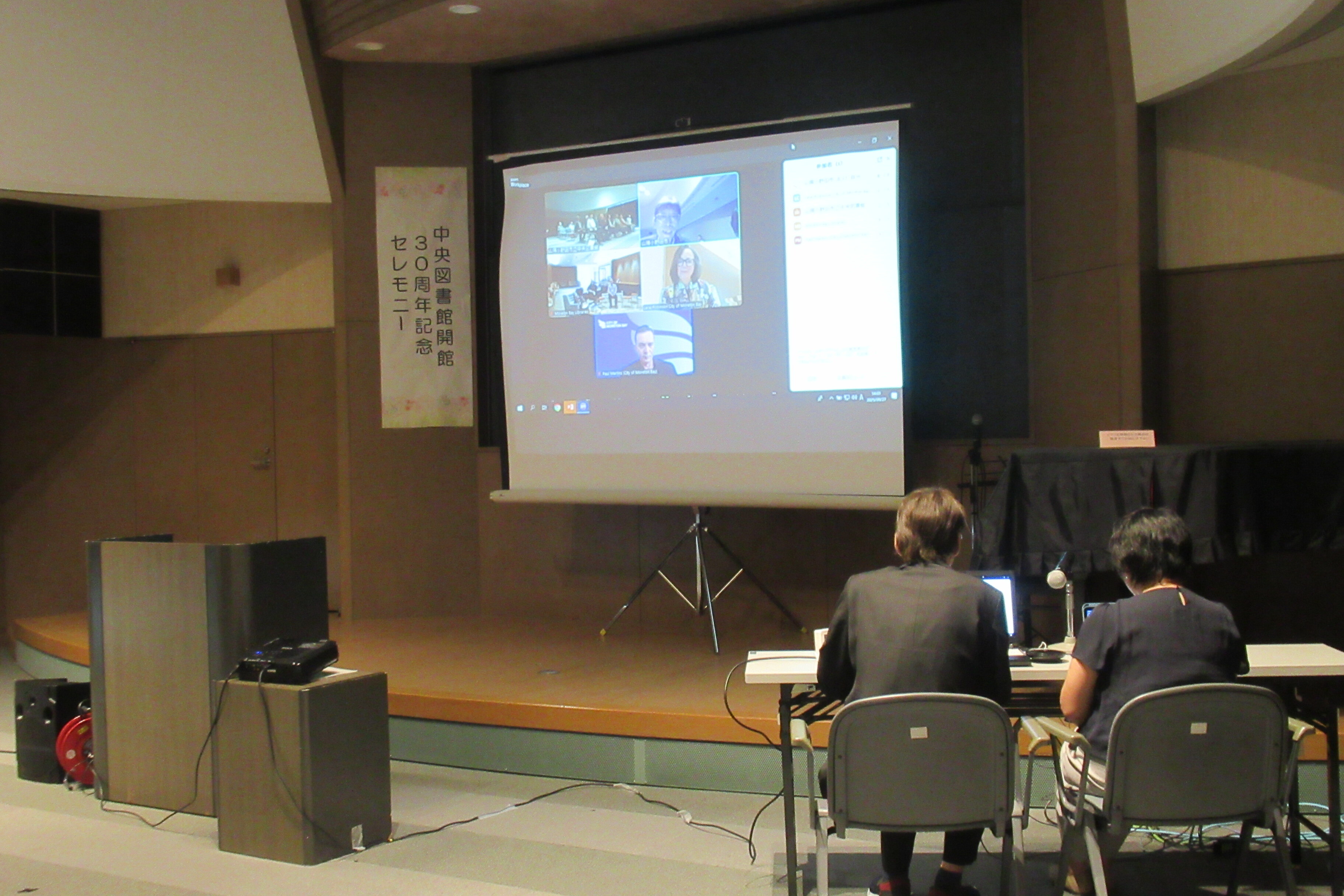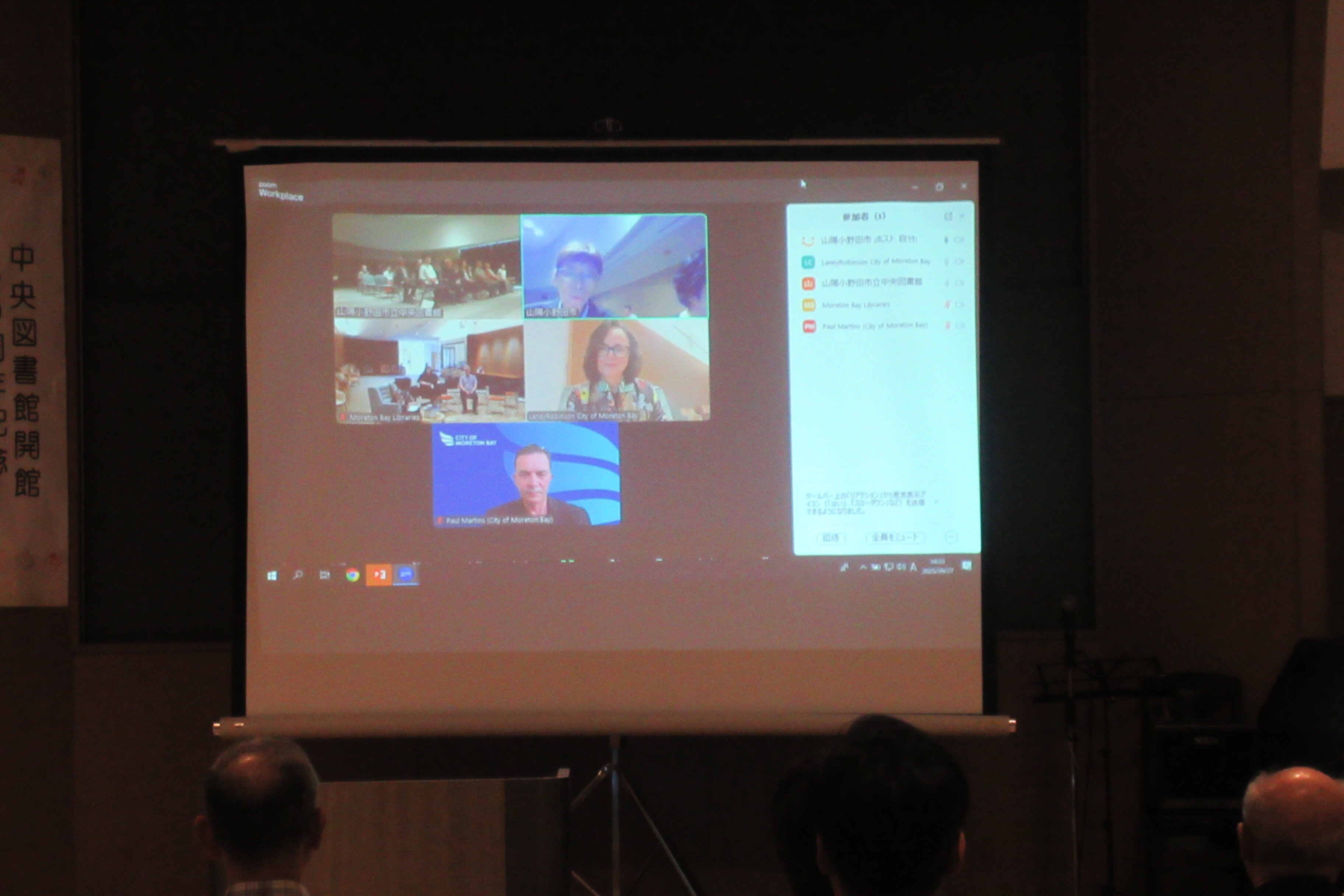 友好都市であるオーストラリア モートンべイ市レッドクリフ図書館と互いの図書館の取り組みや今後の展望などについてオンラインで交流を行いました。