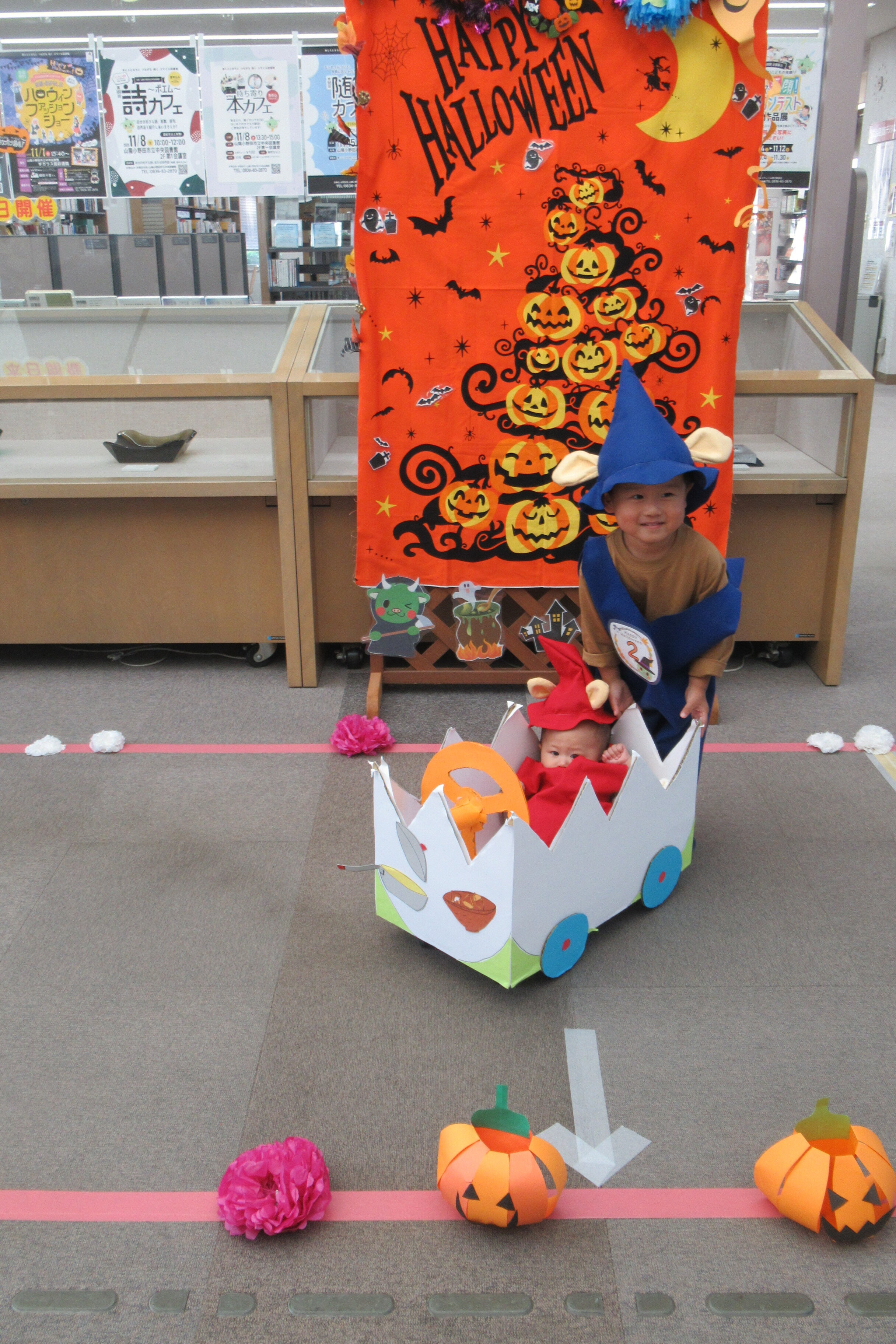 「英語でおはなし会ハロウィンファッションショー」を開催しました 11月1日(土曜日)、「英語でおはなし会ハロウィンファッションショー」を開催しました。小さなお子様たちを中心に家族連れの方も含めて様々な仮装衣装で会場は彩られていました。 現在、ファッションショーに参加された皆さんの個性あふれる仮装や笑顔が輝く写真を展示しています。投票が多かった方には、11月30日(日曜日)開催予定の「図書館フェスティバル」において表彰を行います。お気に入りの仮装にぜひ投票をお願いします。 展示期間 11月21日(金)まで 展示場所 中央図書館 1階特設コーナー