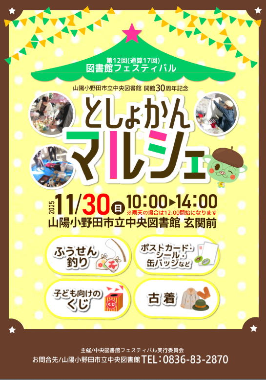 図書館フェスティバルでのイベントとして、としょかんマルシェを開催します。