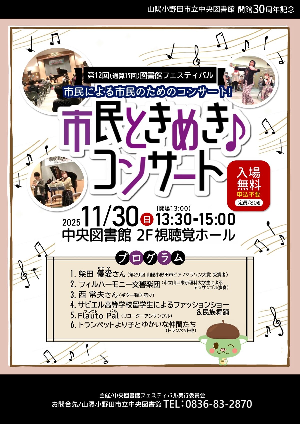 第12回図書館フェスティバル「市民ときめき♪コンサート」 11月30日(日曜日)