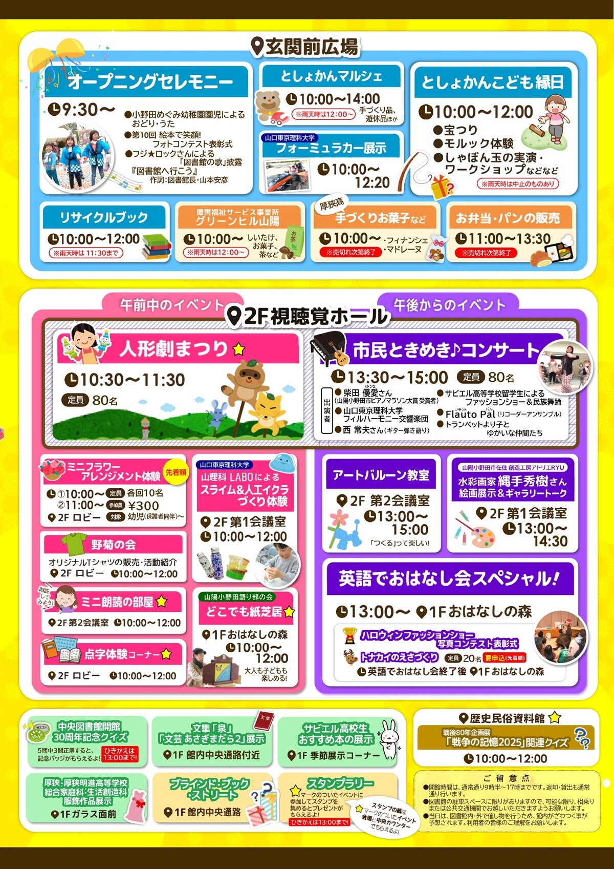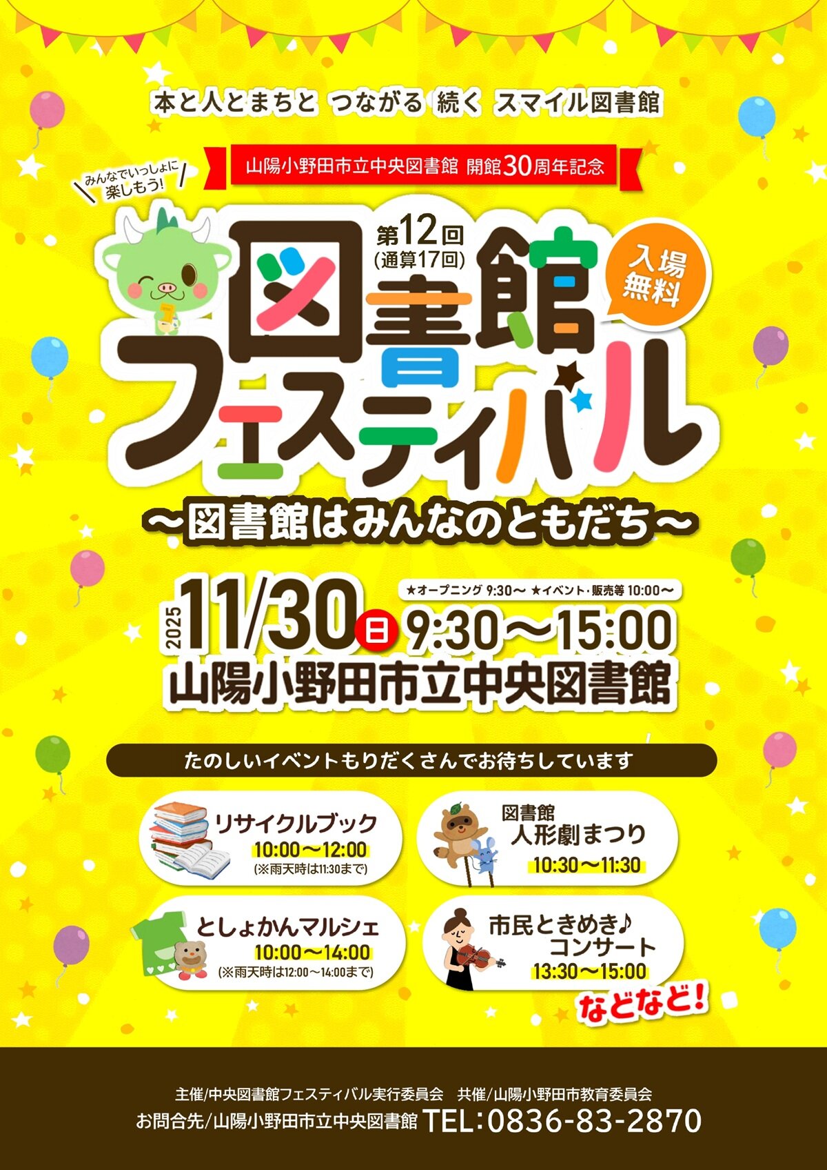 山陽小野田市立中央図書館 開館30周年記念 第12回(通算17回)図書館フェスティバル~図書館はみんなのともだち~を開催します!