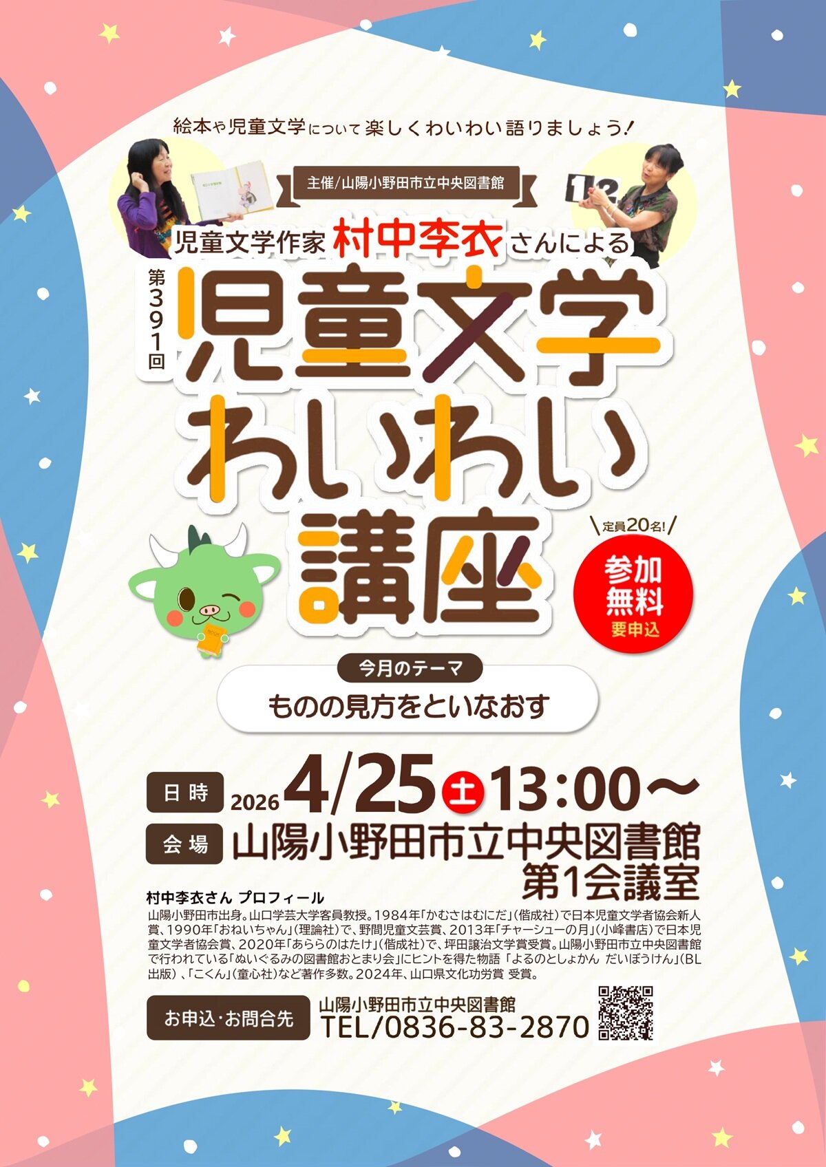 児童文学作家 村中 李衣先生と絵本や児童文学について楽しくわいわい語りましょう!