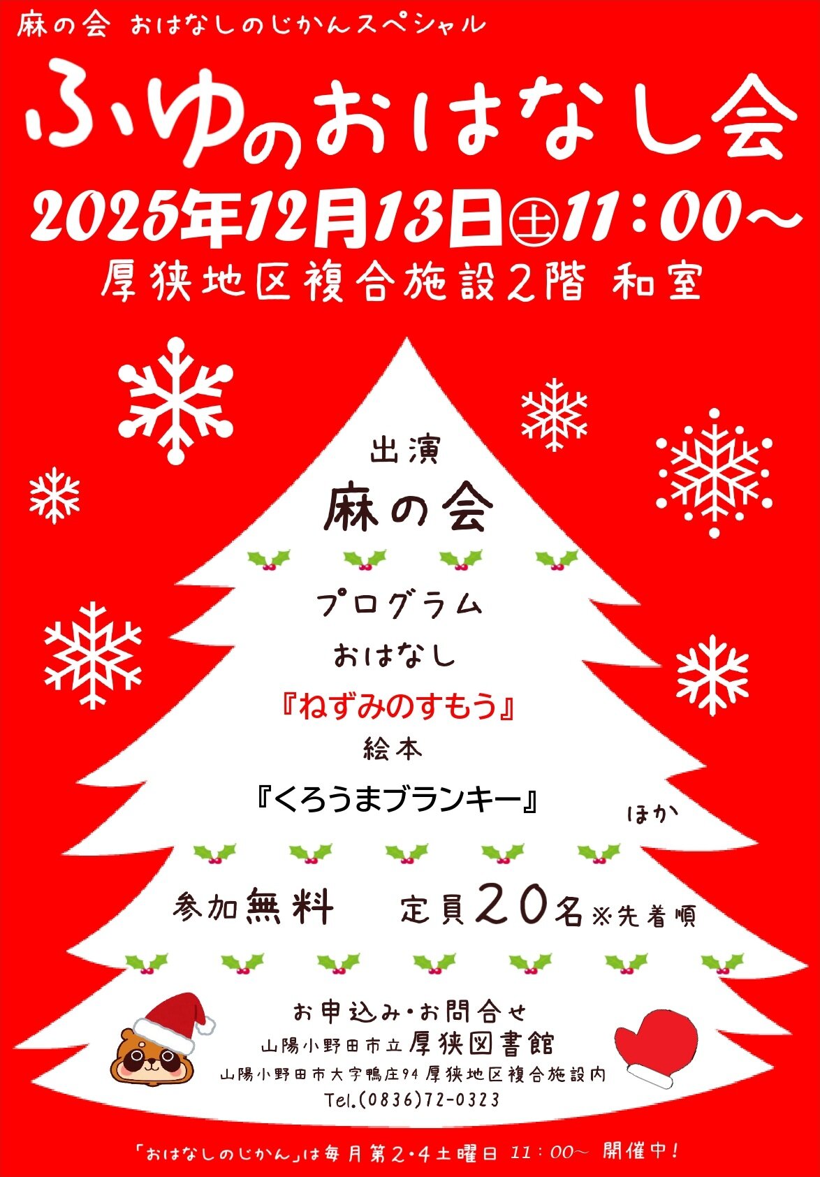2025年12月の「おはなしのじかん」はスペシャルで「ふゆのおはなし会」を下記のとおり開催します。