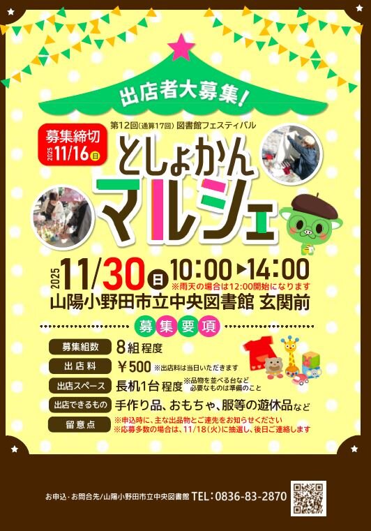 「第12回図書館フェスティバル としょかんマルシェ」出店者を募集しています