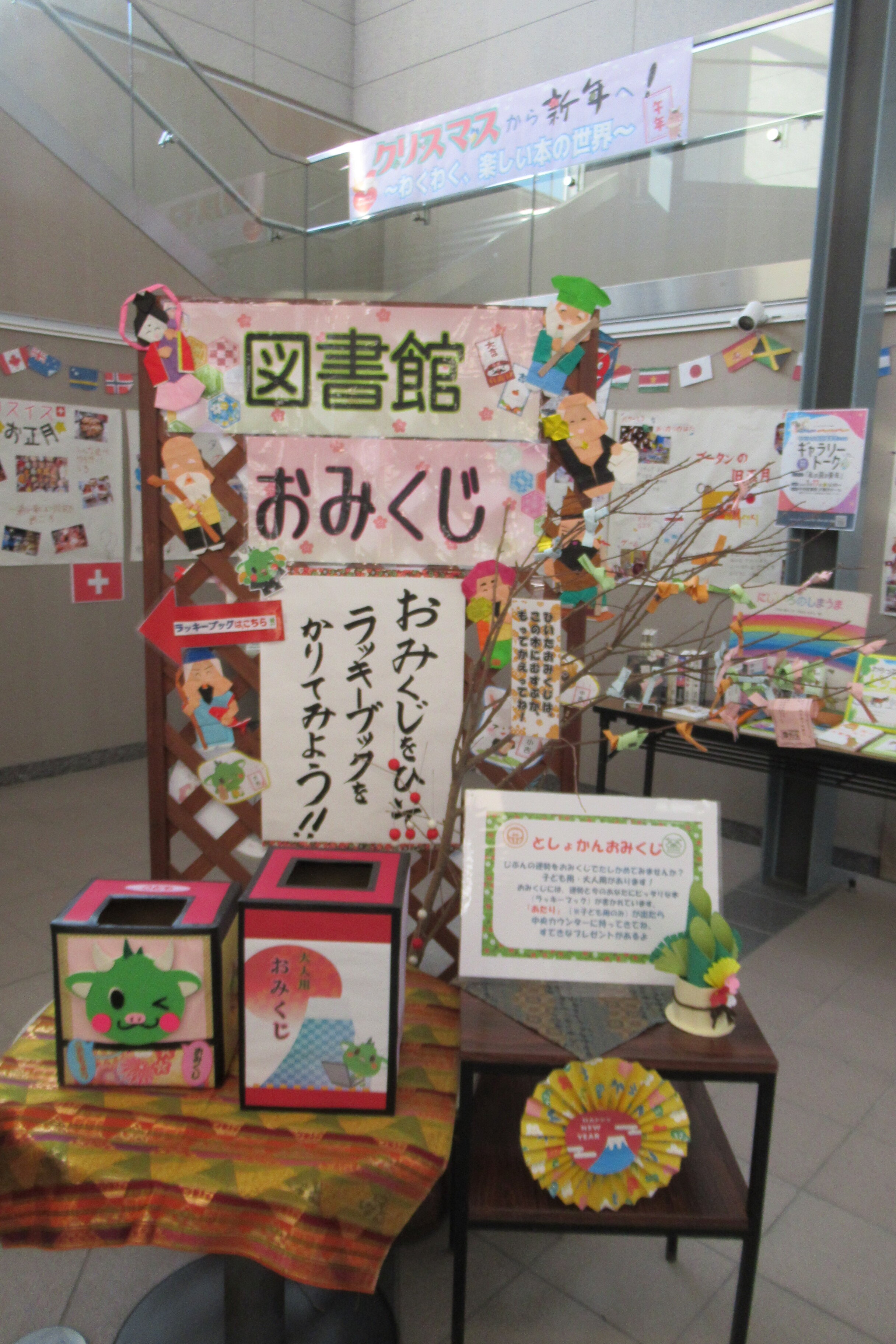 コーナーで「としょかんおみくじ」を引くことができます。新年の運だめしにチャレンジしてみませんか?