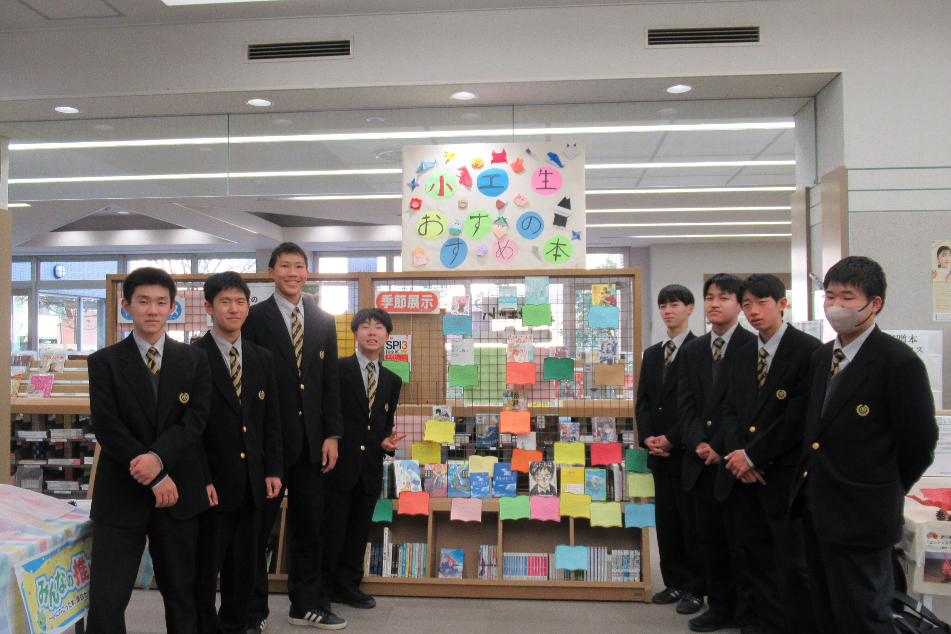 小野田工業高生徒によるおススメ本を展示中です 小野田工業高校の生徒の皆さんによるおススメ本を展示しています。生徒の皆さんのメッセージが込められたポップ(紹介カード)付きです。 ご来館の際にぜひご覧ください!(貸出できます) 展示場所 中央図書館 1階中央カウンター付近(季節展示コーナー) 展示期間 2月4日(水曜日)頃までの予定