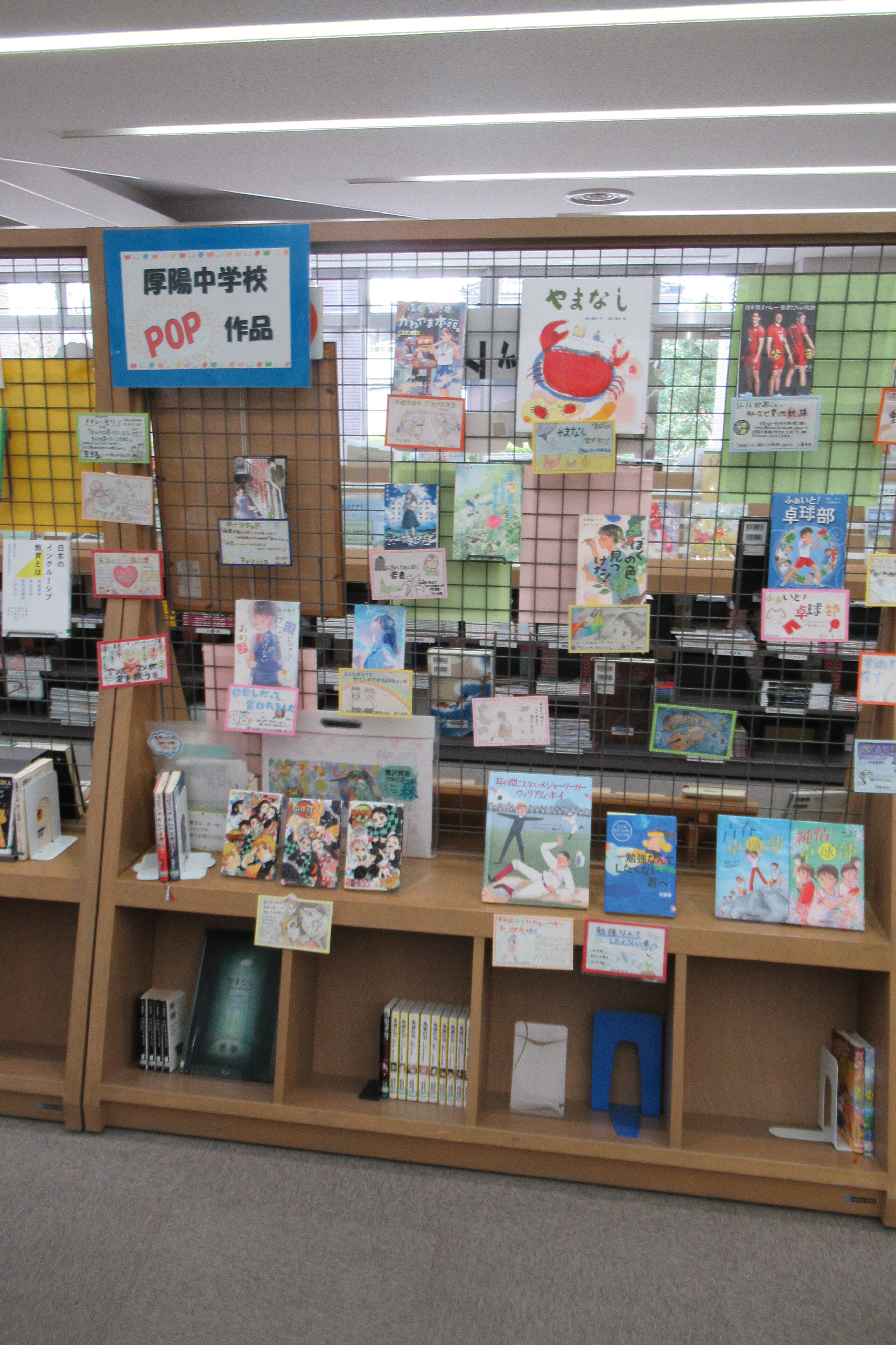厚陽中学校生徒によるおススメ本を展示しています 厚陽中学校の生徒の皆さんによるおススメ本を展示しています。生徒の皆さんのメッセージが込められたポップ(紹介カード)付きです。 ご来館の際にぜひご覧ください!(貸出できます) 展示場所 中央図書館 1階中央カウンター付近(季節展示コーナー) 展示期間 5月2日(日曜日)までの予定